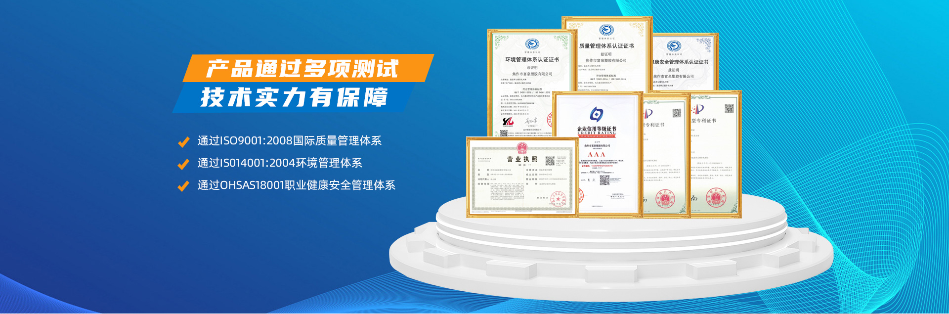 - 焦作市富泉塑膠有限公司,創(chuàng)立于1995年,是一家集研發(fā)、設(shè)計、生產(chǎn)、銷售為一體的大型管材企業(yè)。公司位于太極故里、黃河之濱一一河南焦作溫縣。公司占地128畝,現(xiàn)有職工210余人,其中具有中技術(shù)職稱的19人。生產(chǎn)、檢驗設(shè)備58臺(套),包括PVC實壁管生產(chǎn)線11套、PE實壁管生產(chǎn)線12套、HDPE雙壁波紋管生產(chǎn)線6套、PVC雙壁波紋管生產(chǎn)線5套,檢驗設(shè)備14臺(套)。主要產(chǎn)品有:Φ20mm-630mm、各種壓力規(guī)格的PVCU、PVC-M、PE給水管材,PVC-U節(jié)水灌溉管材,HDPE燃氣和礦用管材,DN200-800mm的HDPE、PVC雙壁波紋管及各種噴灌、滴灌工程材料。承接大中型市政供排水、飲水安全及節(jié)水灌溉等工程?! 「蝗苣z公司重視產(chǎn)品的質(zhì)量、安全、環(huán)保和節(jié)能,在同行業(yè)中率先完成了“新華節(jié)水產(chǎn)品認證”,全方面通過ISO9001:2008國際質(zhì)量管理體系、IS014001:2004環(huán)境管理體系和OHSAS18001職業(yè)健康安全管理體系的一體化導(dǎo)入,并建立起規(guī)范的現(xiàn)代企業(yè)管理體系。公司以“質(zhì)量”為先導(dǎo),采用質(zhì)量跟蹤、多環(huán)節(jié)把關(guān)的方法,組建具有行業(yè)水準的企業(yè)技術(shù)檢測中心,常年委托水利部節(jié)水灌溉設(shè)備檢測中心、河南省產(chǎn)品質(zhì)量監(jiān)督檢驗院對產(chǎn)品跟蹤檢測,并由中國人民保險公司承保產(chǎn)品質(zhì)量。公司連續(xù)多年被河南省水利廳確定為“安全飲水設(shè)備、節(jié)水灌溉設(shè)備”定點生產(chǎn)企業(yè),并獲得“中國名優(yōu)產(chǎn)品”“質(zhì)量、服務(wù)、信譽AAA企業(yè)”“河南省**產(chǎn)品”“河南省水利企業(yè)”“河南省守合同、重信用企業(yè)”等榮譽稱號。 富泉塑膠公司堅持“用戶為上”的服務(wù)理念,長期以來,全方面關(guān)注客戶價值,不斷提升服務(wù)水平。服務(wù)隊伍常年為客戶的產(chǎn)品設(shè)計、施工、安裝提供合理的方案和全程細致、周到、**、快捷的技術(shù)服務(wù)。公司自成立以來,一直堅持以人為本的宗旨,塑造企業(yè)形象,并致力于新產(chǎn)品的開發(fā),憑借雄厚的技術(shù)開發(fā)能力,先進的工藝制造流程,嚴格的質(zhì)量管理保證體系,優(yōu)良的售后服務(wù)網(wǎng)絡(luò),已成為河南省大的飲水、灌溉及排水管材設(shè)備制造商。產(chǎn)品暢銷全國,而且還以公司雄厚的綜合實力在業(yè)界中占據(jù)著重要的地位。